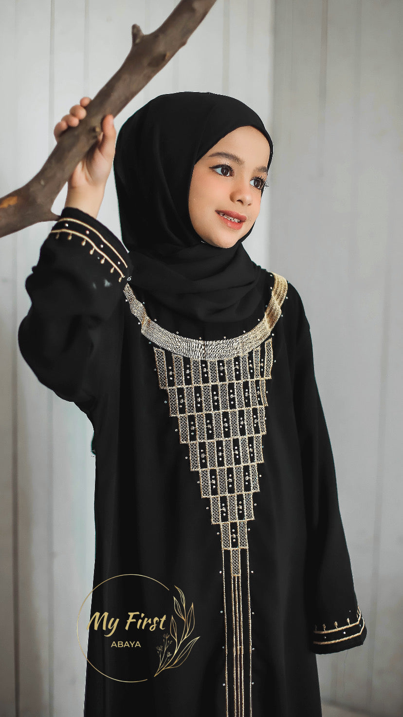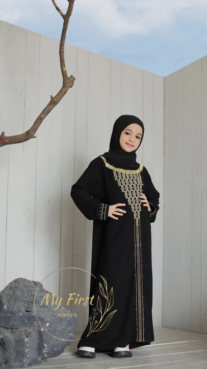 Introducing our Fatimah abaya, beautiful gold embroidery design perfect for any occasion. This abaya is loose fitting, versatile and perfect for any occasions. Material is perfect for young girls, not see through but also lightweight and breathable that will provide comfort and perfect for all year around, our sizing are all true to size and perfect length and fitting on the sleeves.